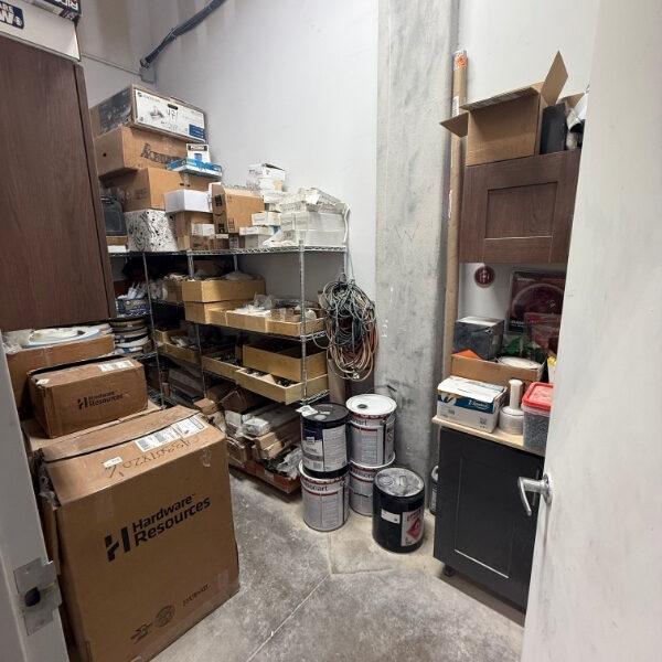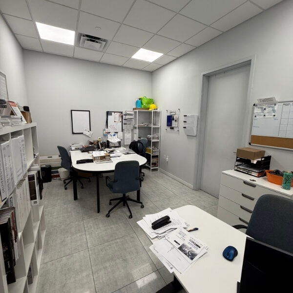 The suite has showroom, offices, store room and large warehouse.  There is an open kitchenette and large table.